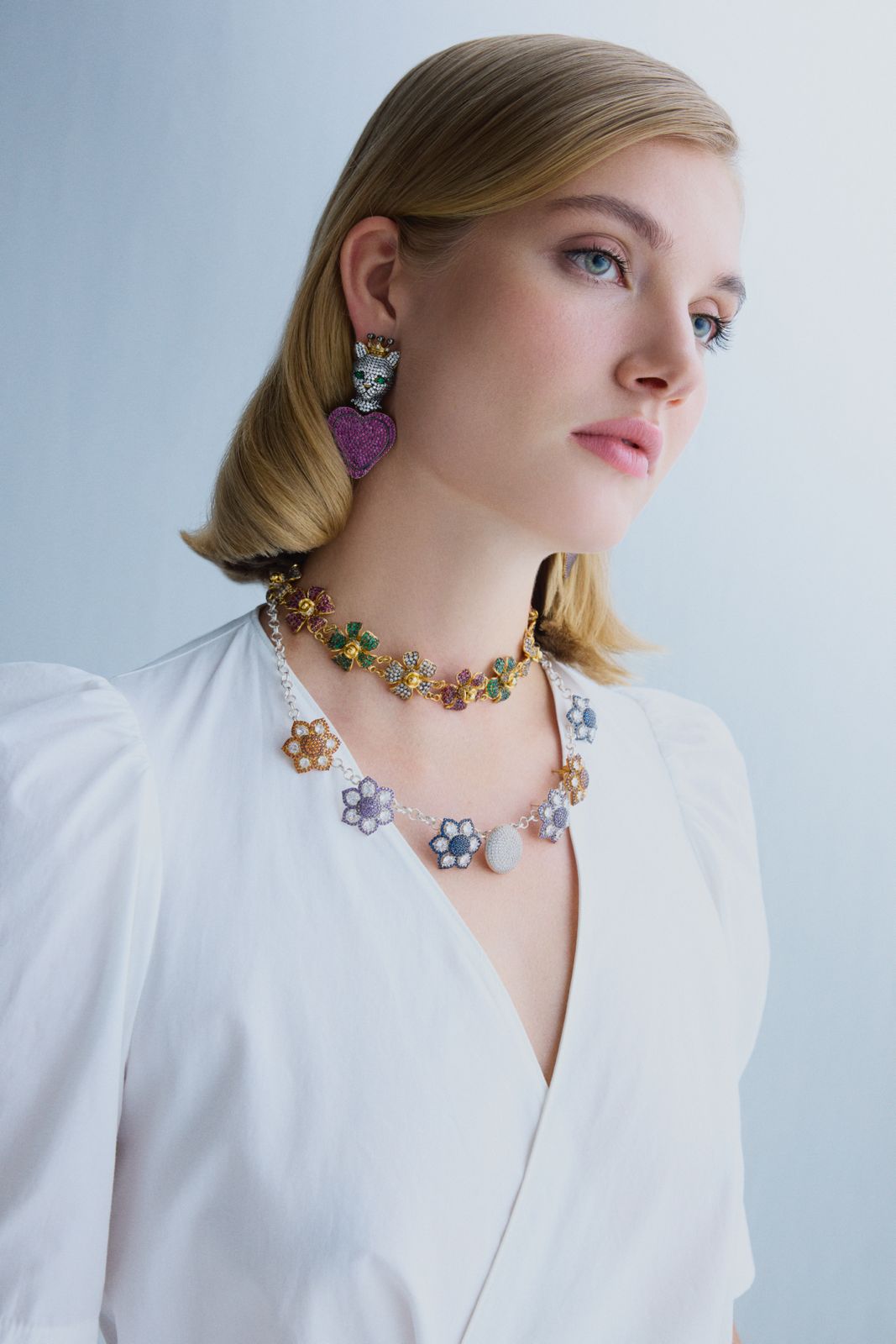 Inner Flower Ruby & Yeşil & Beyaz Choker / Kolye