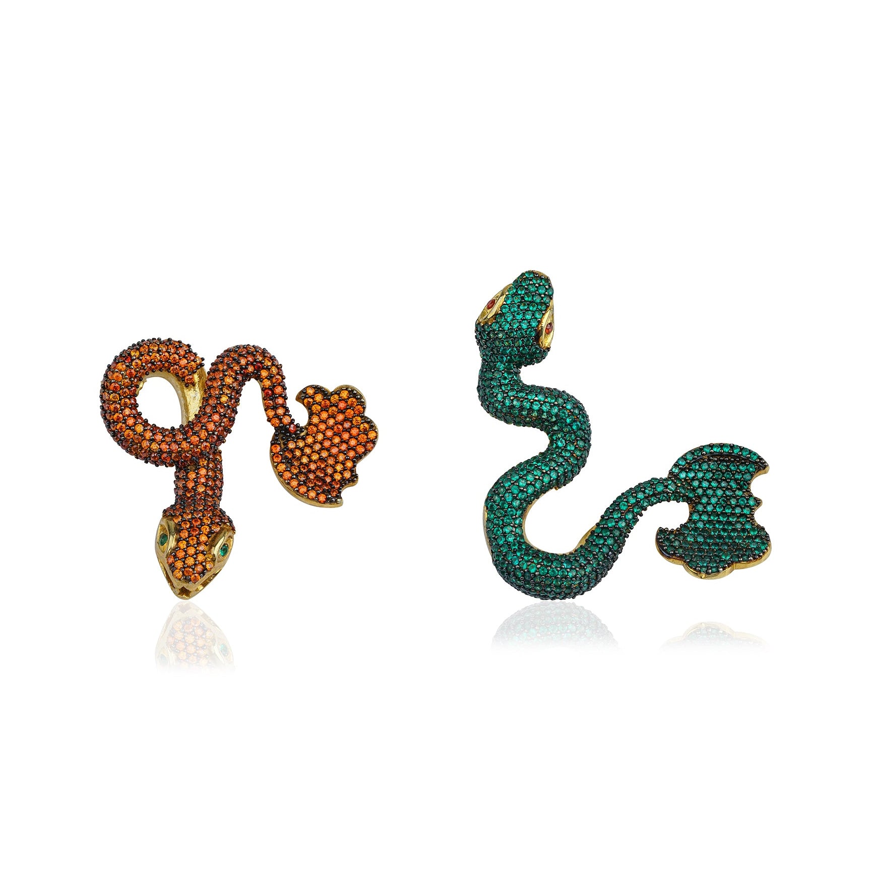 Power of Love Yeşil & Turuncu Mitolojik Şahmeran Küpe