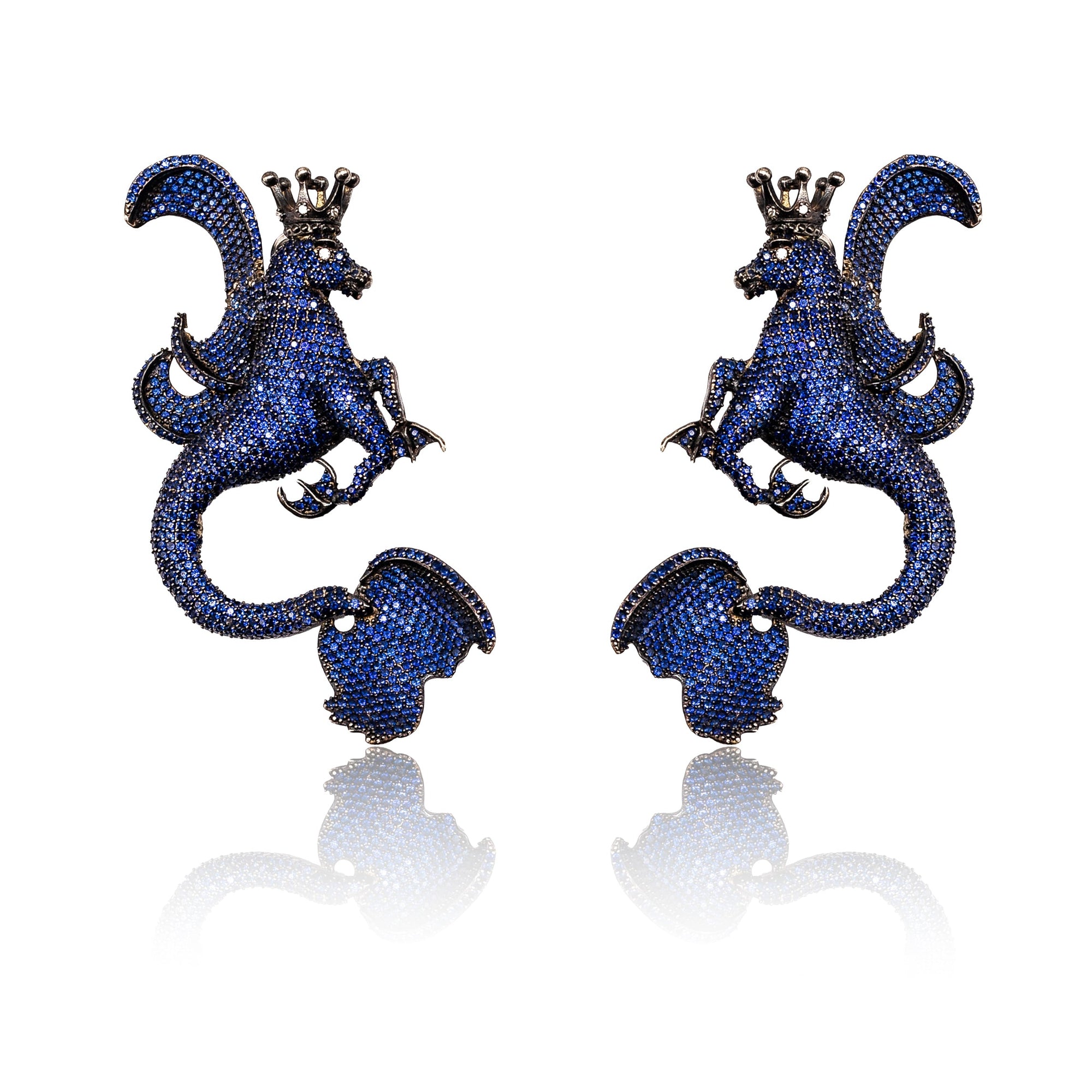 Secret of The Universe Dark Blue Mythological Dragon Earrings