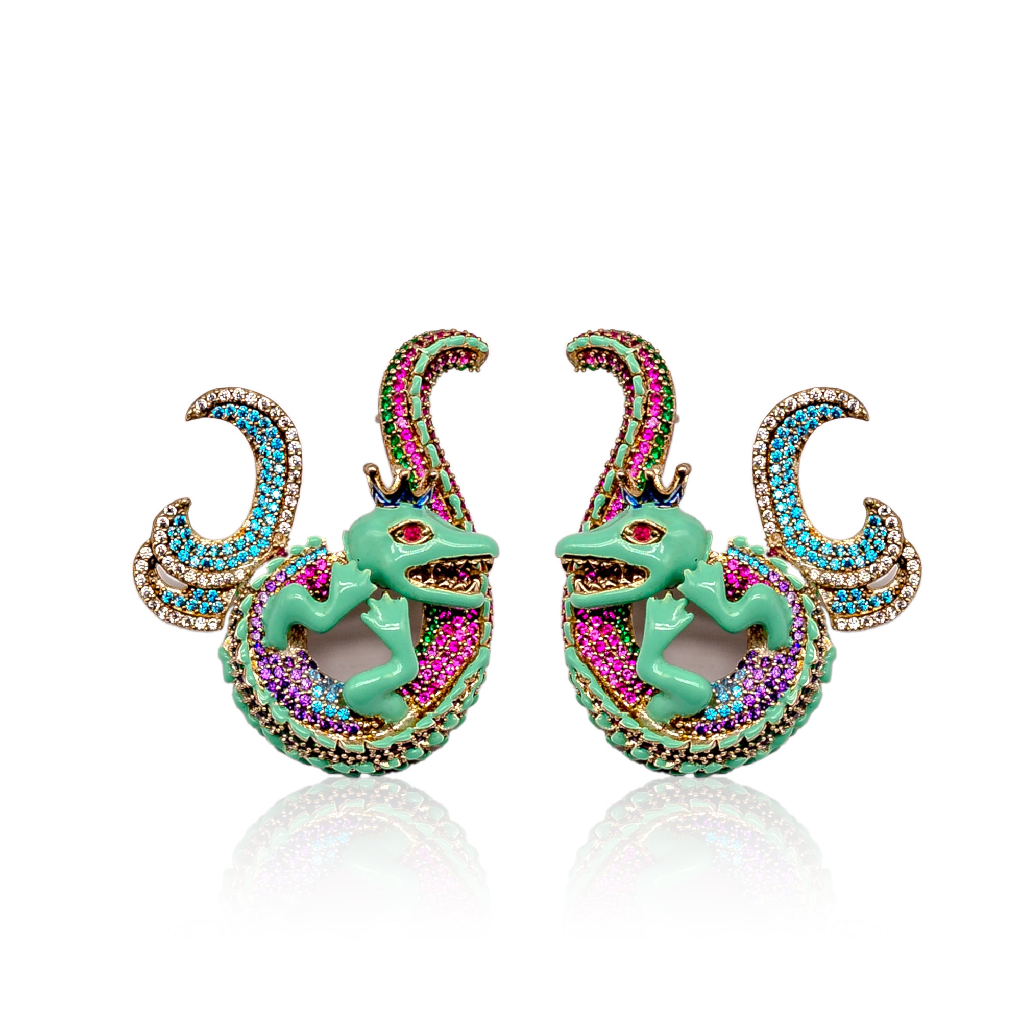 Provocative Attraction Ruby &Aqua Crystal Enamel Crocodile Earrings