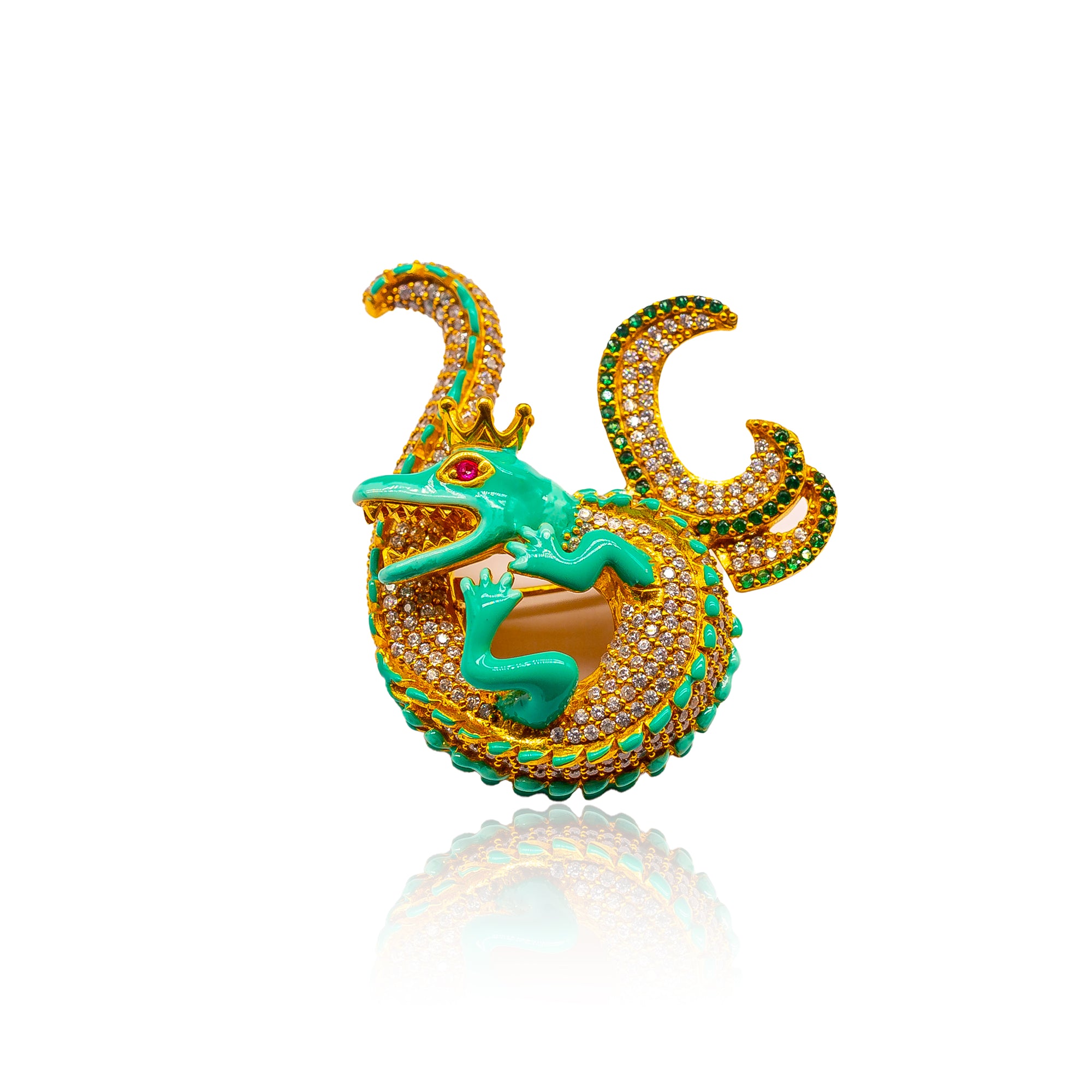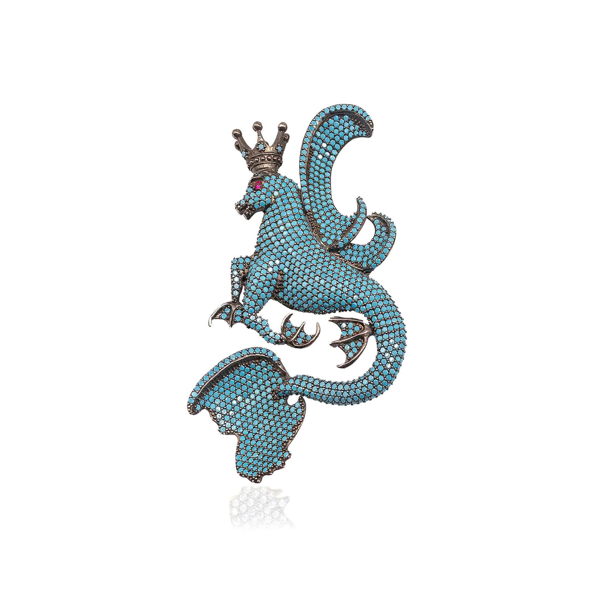 Secret of Stamboul Turquoise Crystal Mythological Dragon Necklace / Brooch