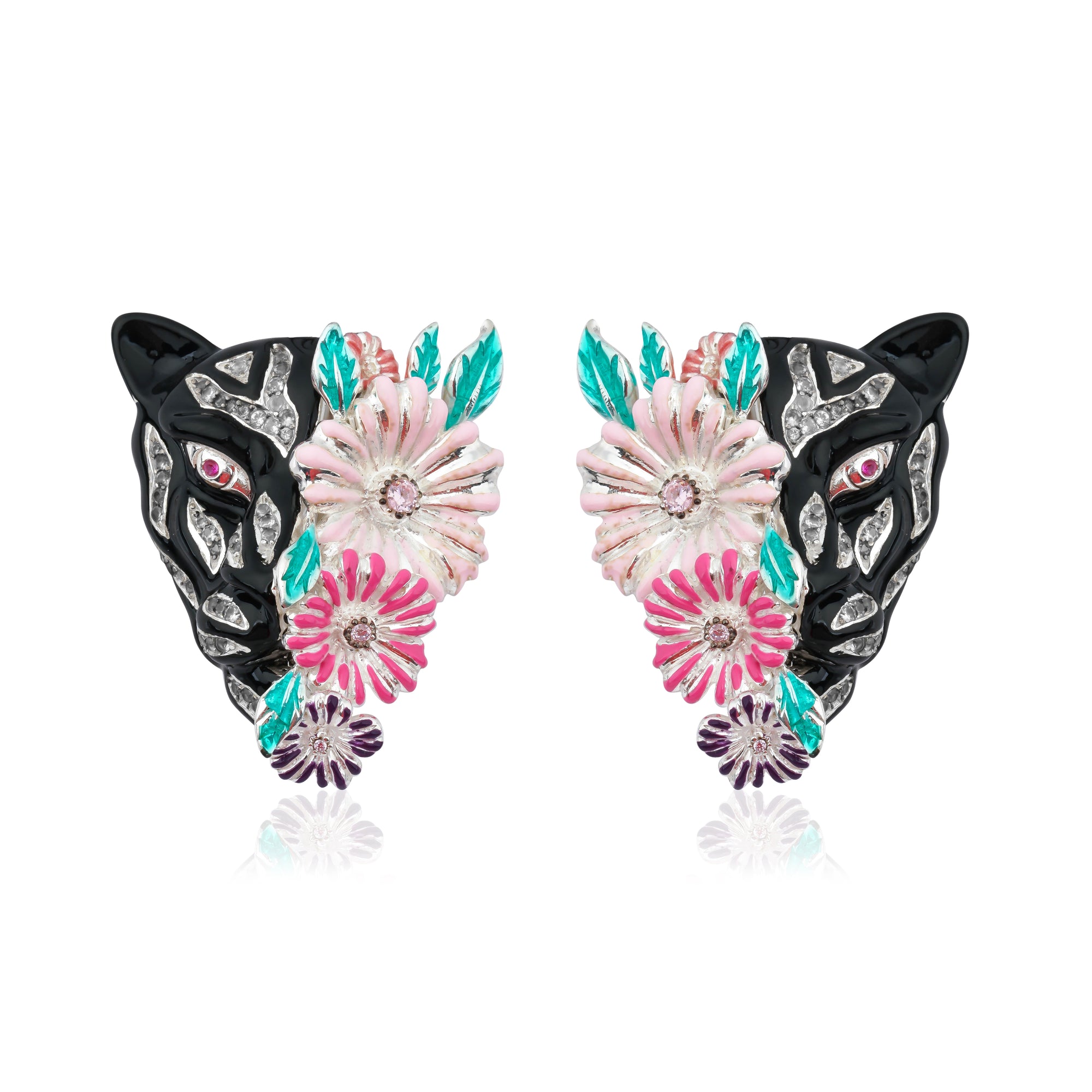 Harmony of Contrast White & Black Enamel Tiger Earrings