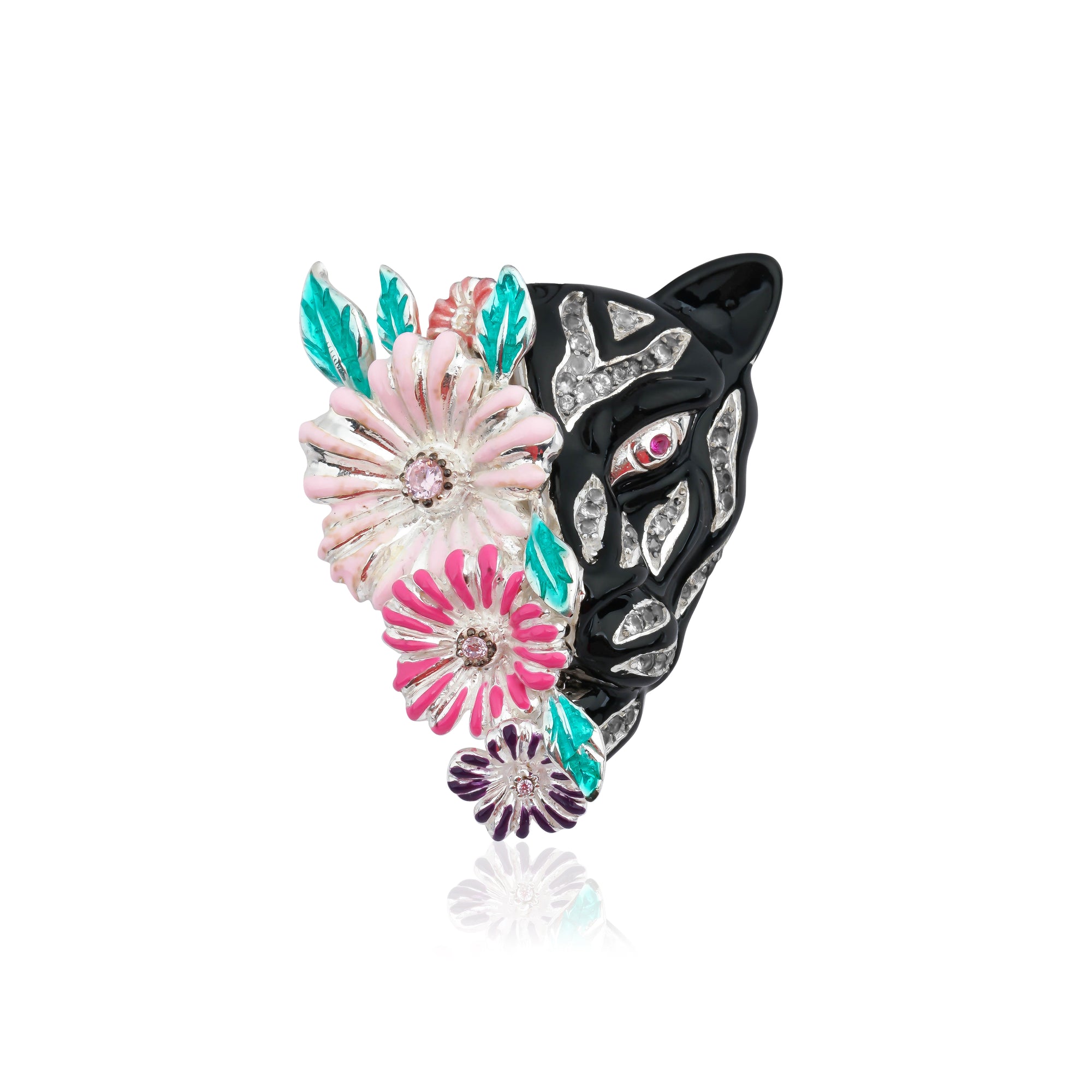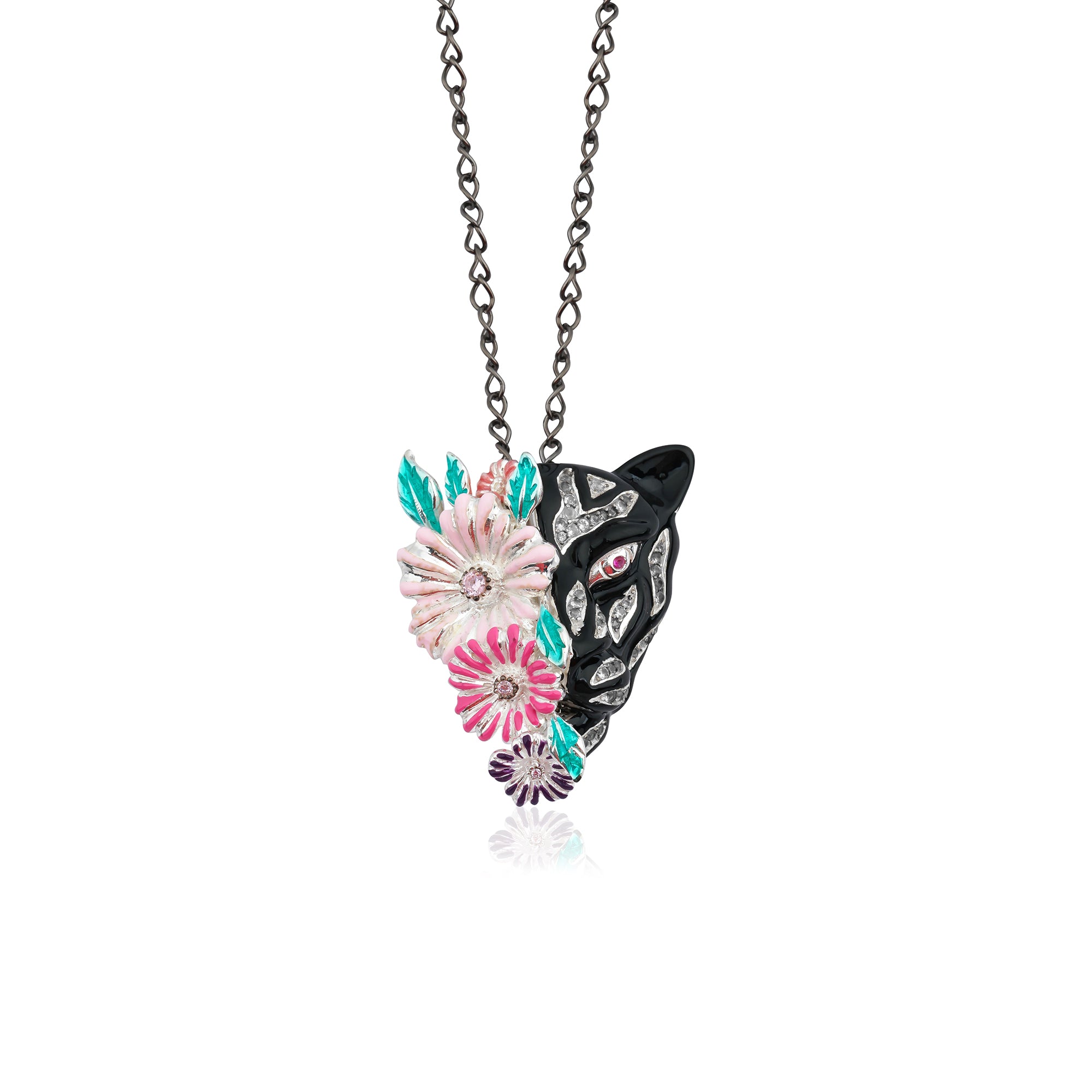 Harmony of Contrast White & Black Enamel Tiger Necklace/Brooch