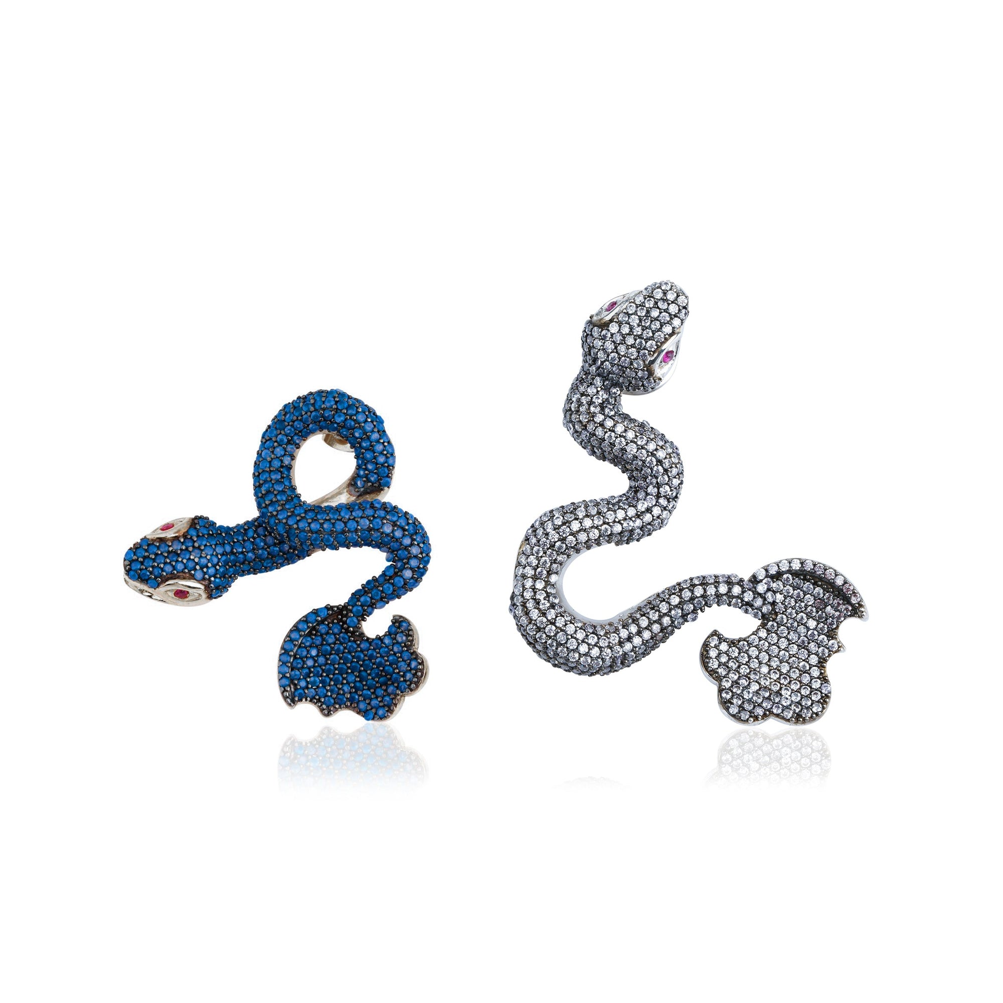 Power of Love Dark Blue & White Mythological Shahmaran Earrings