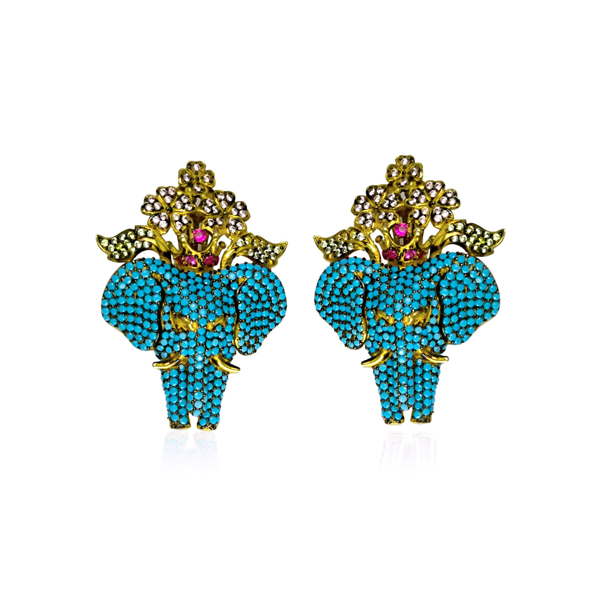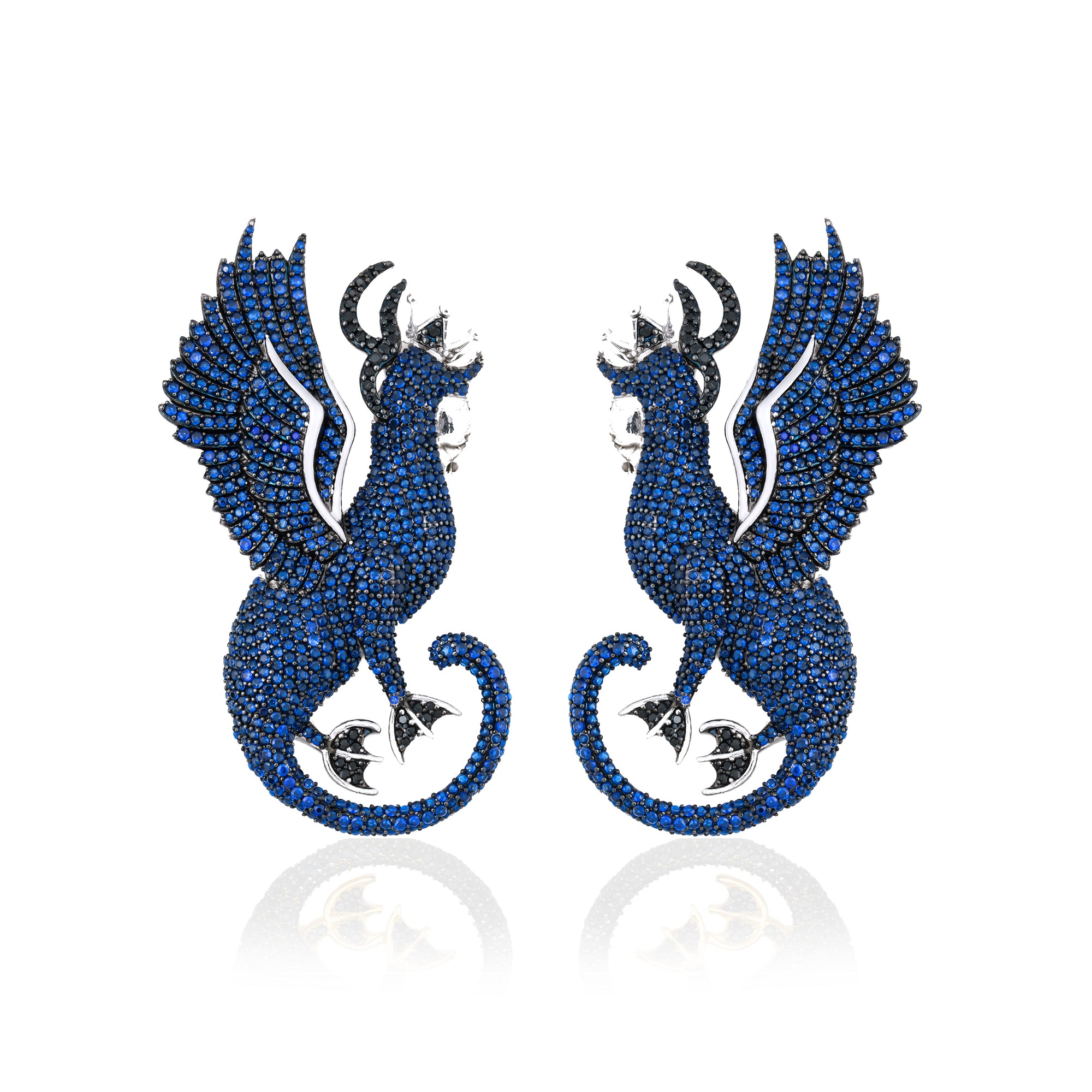 Mystery of Art Dark Blue Crystal Mythological Sphinx Earrings