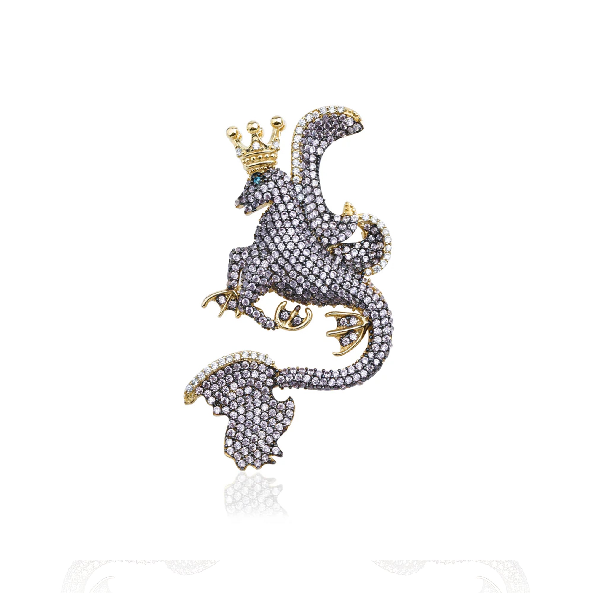Secret of Stamboul White Crystal Mythological Dragon Necklace / Brooch