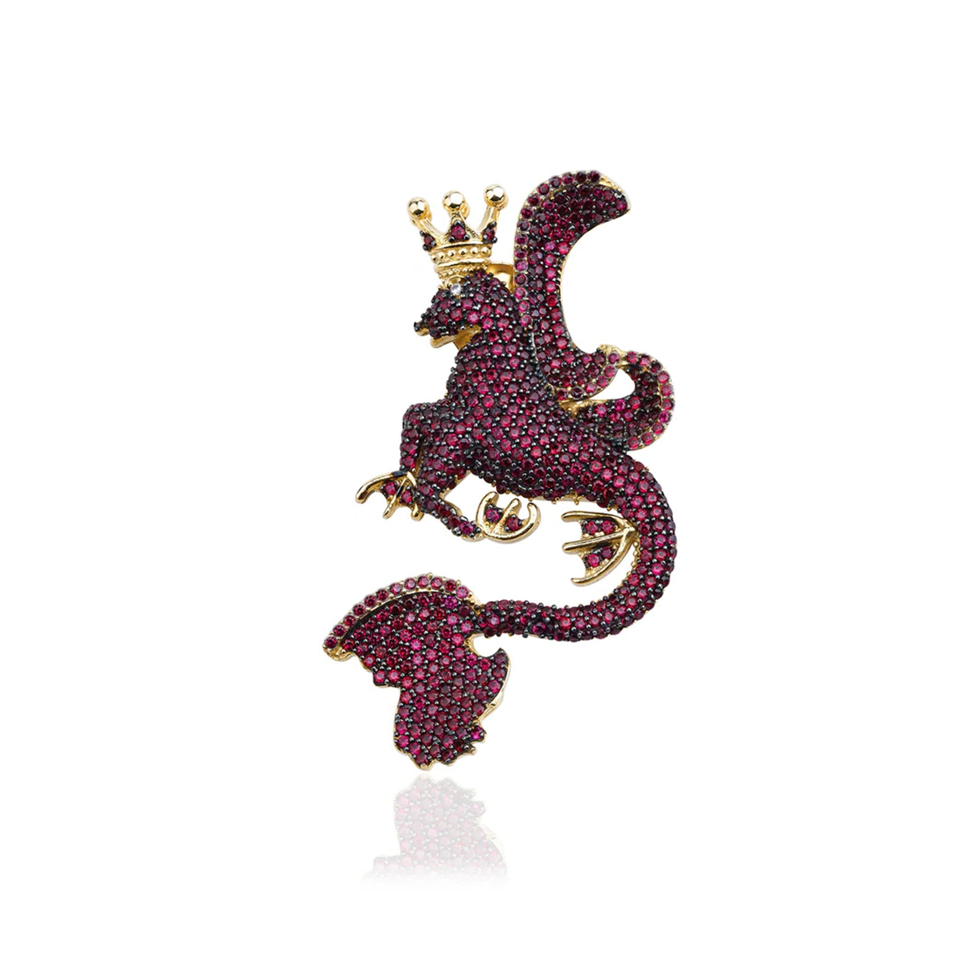 Secret of Stamboul Burgundy Crystal Mythological Dragon Necklace / Brooch