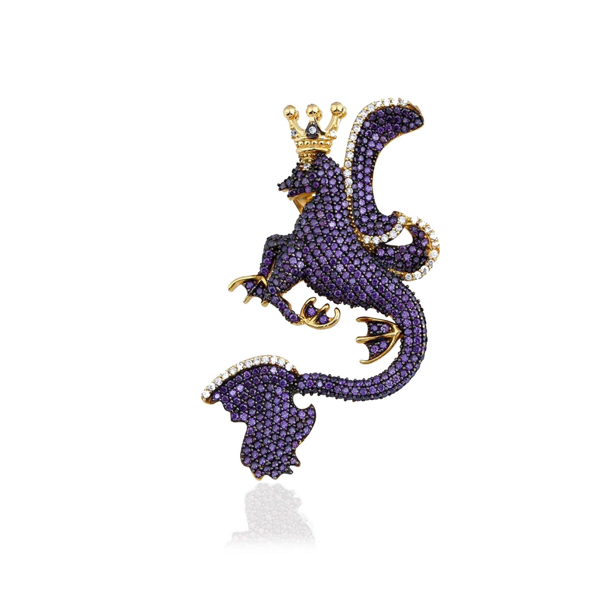 Secret of Stamboul Purple White Crystal Mythological Dragon Necklace / Brooch